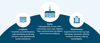 Danmark har en af de mest decentrale offentlige sektorer i verden, hvor opgaverne fordeles mellem hhv. stat, regioner og kommuner. De danske kommuner og regioner står for mere end halvdelen af de offentlige udgifter.