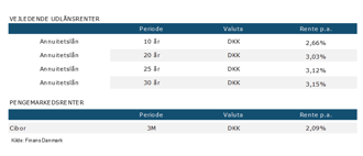 Til rentegraferne anvendes 3M CIBOR- og swaprenter baseret i DKK. Swaprenter i DKK er de markedsmæssigt mest likvide og anvendte renter i det danske rentemarked. Swaprenterne med et tillæg eller et fradrag er grundlaget for fastsættelsen af renten på fastforrentede lån i KommuneKredit.