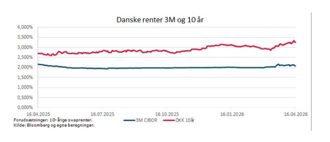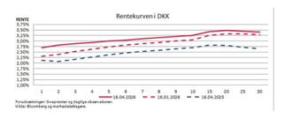 Denne usikkerhed kan blandt andet ses i markedets forventninger til FED og ECB. På møderne i april forventes det ikke, at renterne ændres. Der er derimod uenighed om, hvad der vil ske med renterne fremover. Det betyder, at renterne på markederne i USA og eurozonen svinger næsten dagligt. Disse udsving smitter også af på det danske rentemarked.
